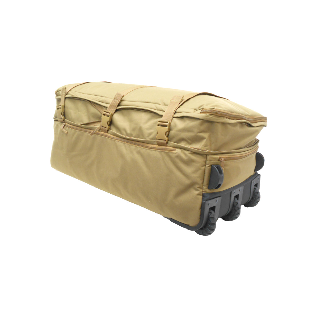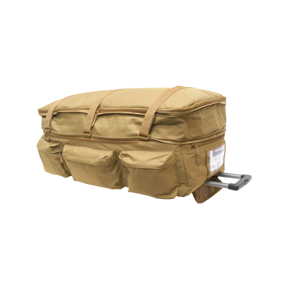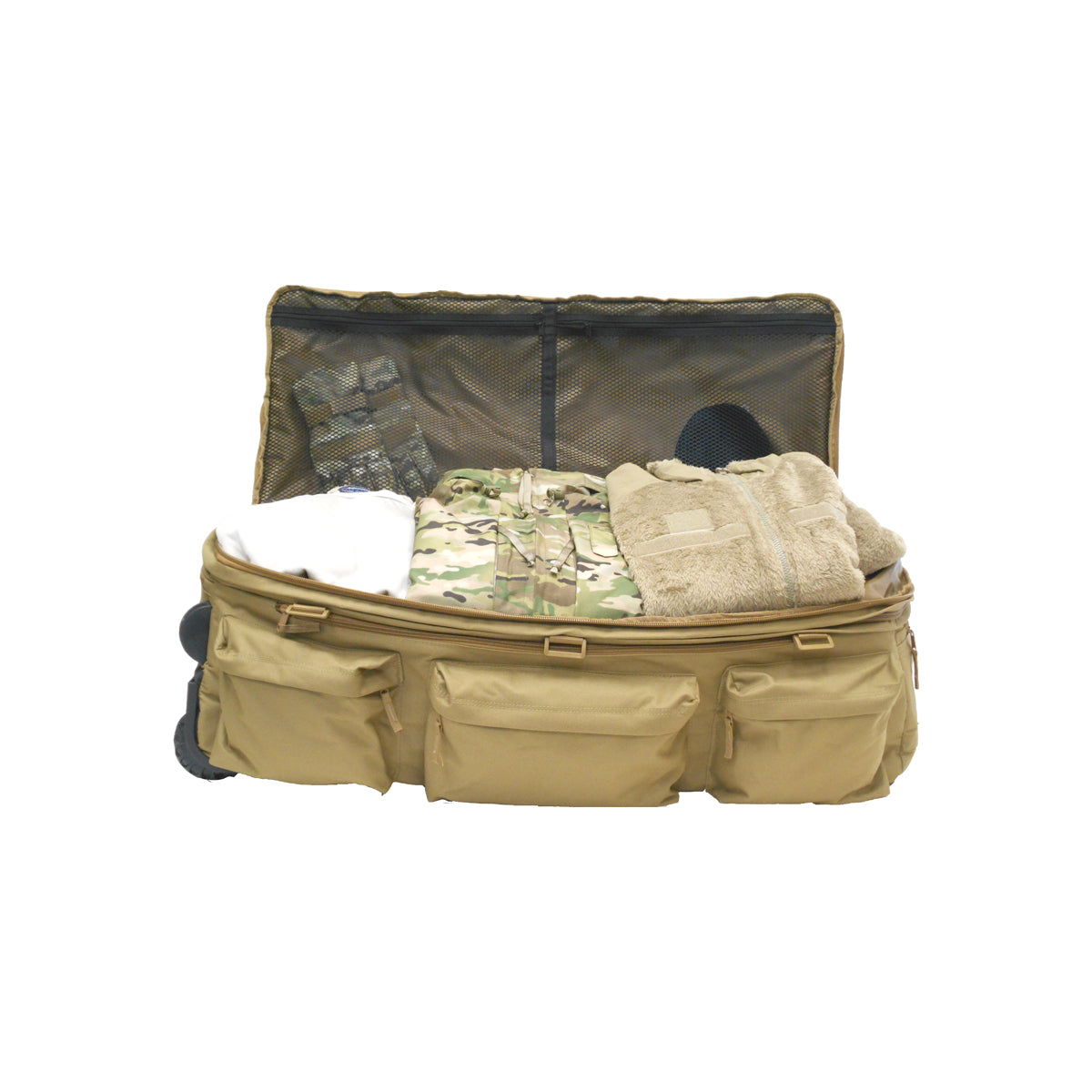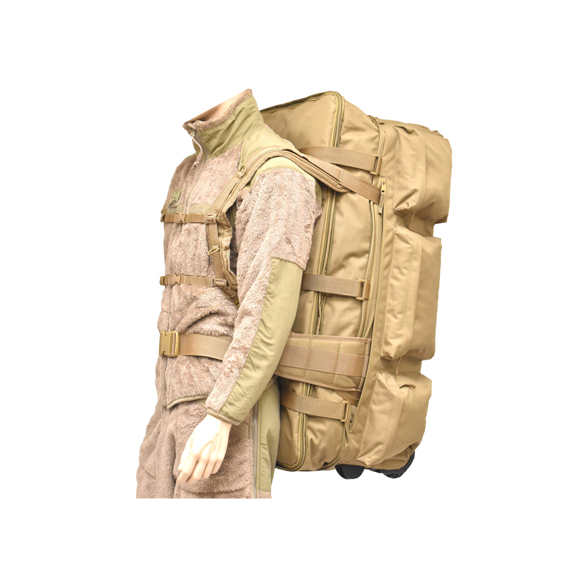 This bag was engineered for use by deploying troops, we get that you have certain needs and expectations of the bag when it is in transit, and other needs and expectations when you are living out of it. You need a bag that is tough, can hold a lot of gear, is easy to maneuver in airports but is also easily made into a backpack when the terrain isn’t “wheel friendly”. You need a bag you can live out of without having to fight shoulder straps and compression straps every day, that is why our shoulder straps and waist belt zip away when not needed and our external compression straps are removable and easily stored in a pocket when the bag isn’t in transit.