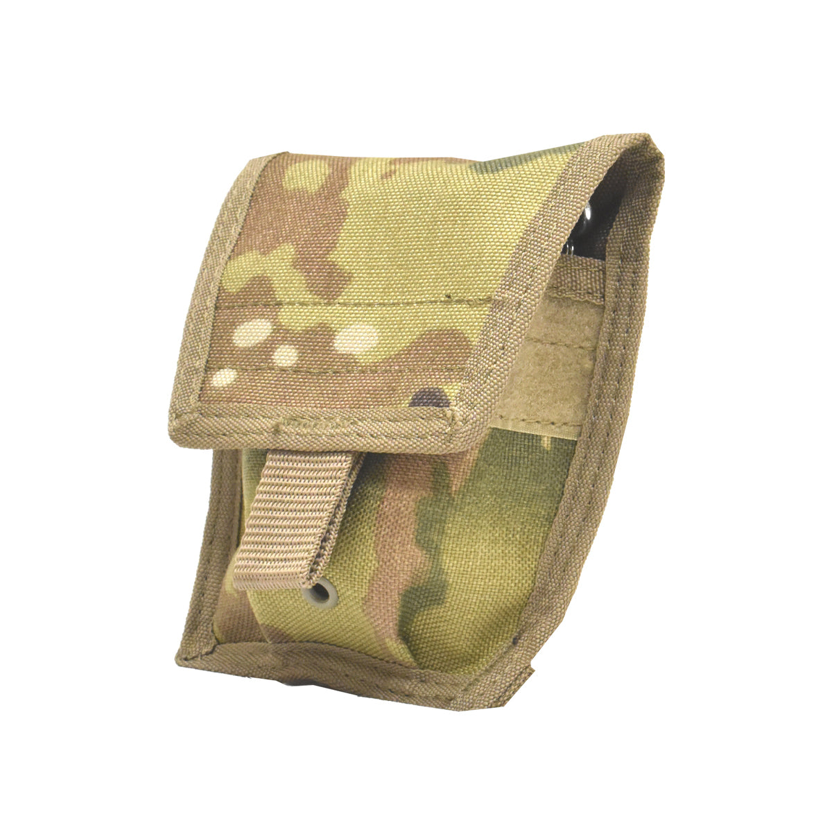 Handcuff pouch. OCP. This pouch holds 2 standard handcuffs, MOLLE attachable, flap closure with hook and loop fastener.